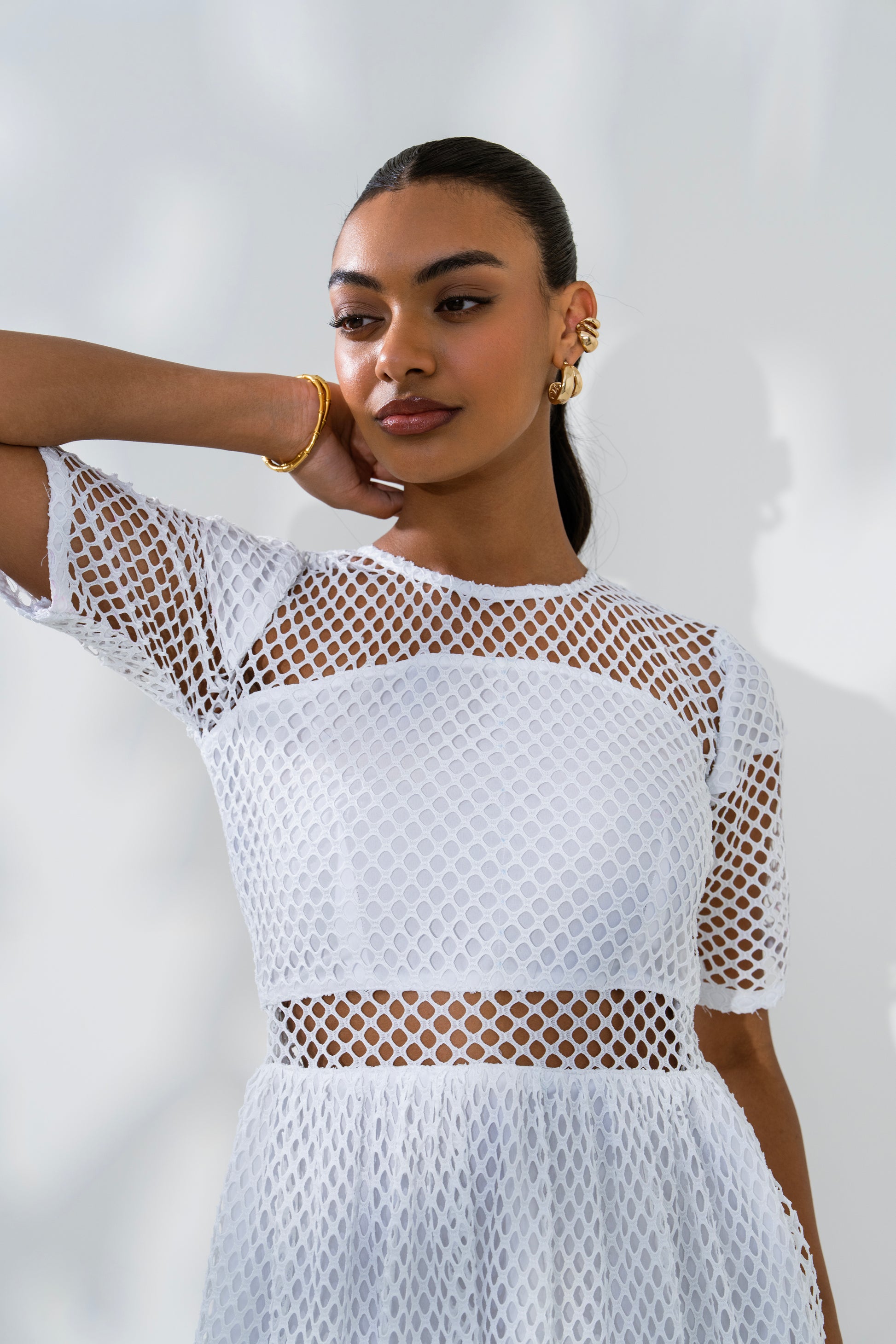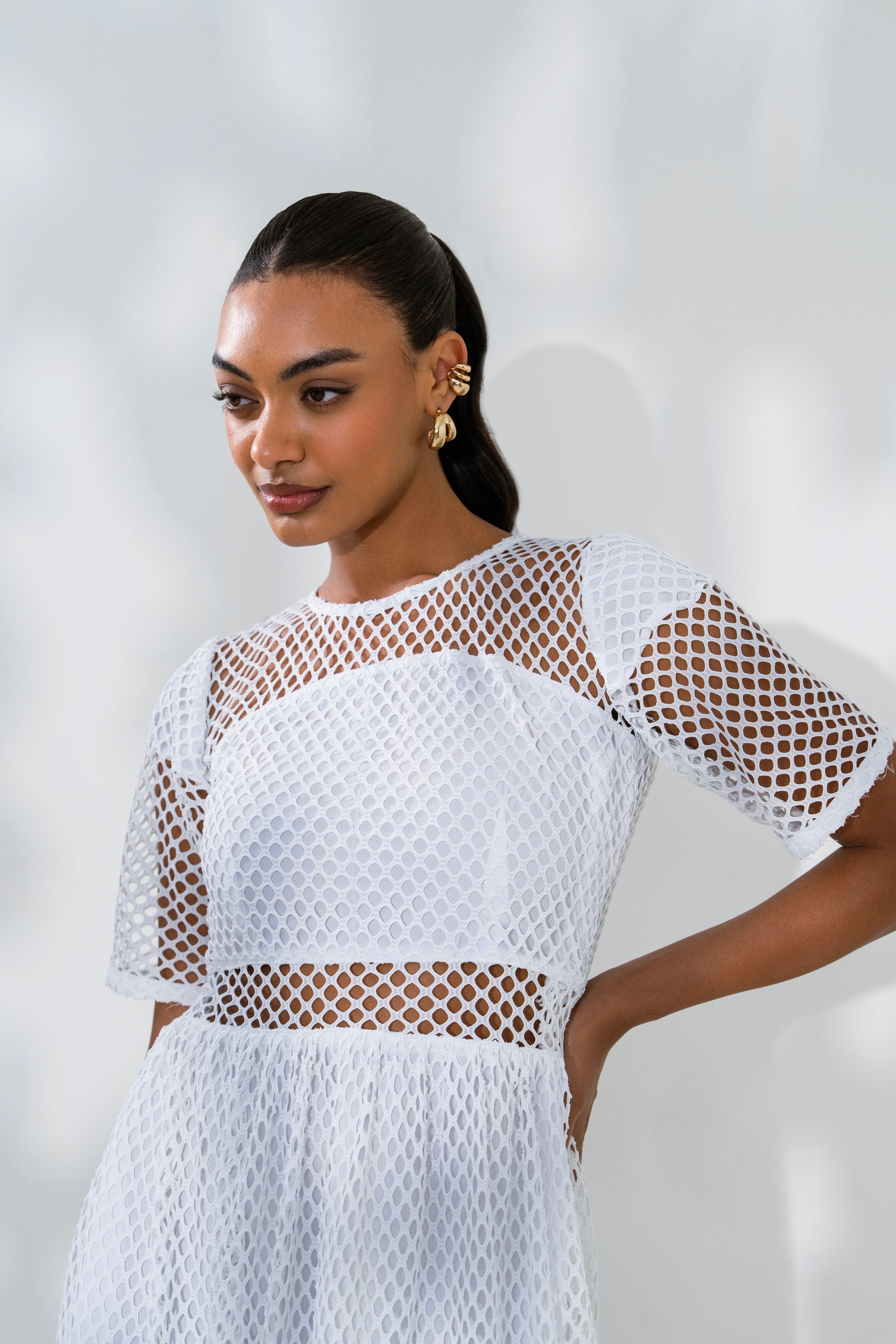 - Soft White Mesh Fabric